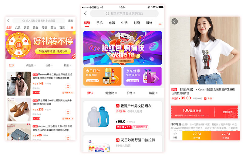 支持淘宝天猫、京东、拼多多、唯品会等商城电商导购,无缝对接第三方电商CPS联盟平台。